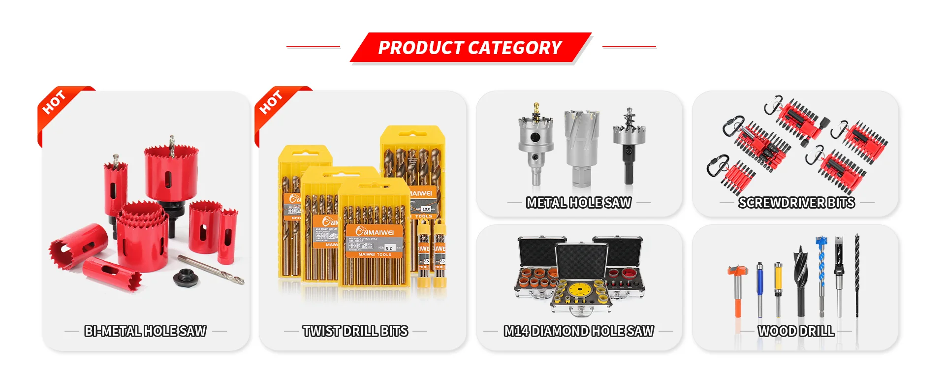 मुख्य उत्पादों: ड्रिल बिट्स, छेद देखा, स्क्रूड्राइवर बिट्स, चिसेल, इलेक्ट्रिक वेल्डिंग मशीन